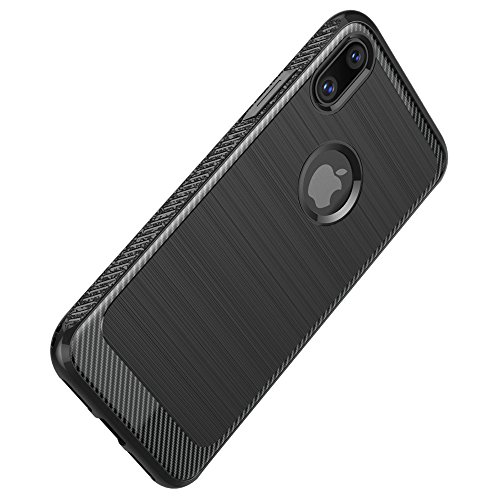 EbestStar - Cover Compatibile con iPhone X, iPhone XS Custodia Silicone Gel Design Fibra di Carbonio Metallico Bordi Rinforzati, Nero + Vetro Temperato [Apparecchio: 143.6 x70.9 x7.7mm, 5.8'']