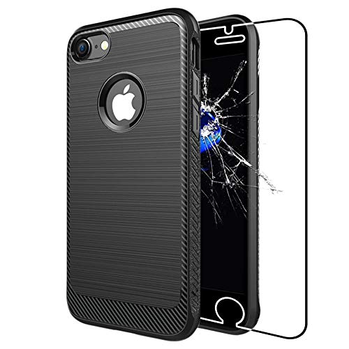 EbestStar - Cover Compatibile con iPhone 7, iPhone 8 Custodia Silicone Design Fibra di Carbonio Metallico Bordi Rinforzati, Nero +Vetro Temperato [iPhone: 138.3/138.4x67.1/67.3x7.1/7.3mm 4.7"]