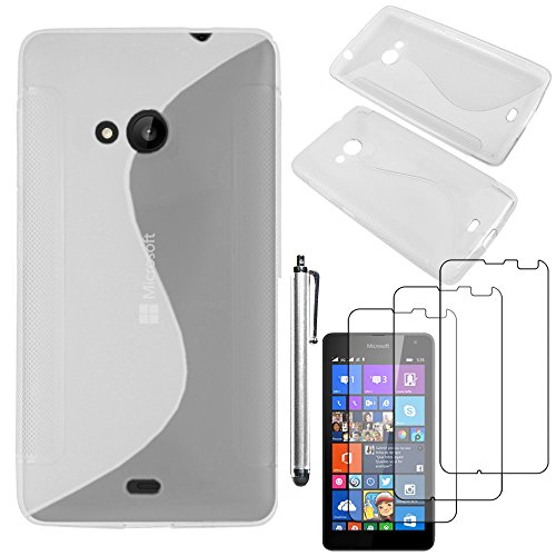 EbestStar - Cover Compatibile con Microsoft Nokia Lumia 535 Custodia Protezione S-Line Silicone Gel Morbida +Penna +3 Pellicole plastica, Trasparente [Apparecchio: 140.2 x 72.4 x 8.8mm, 5.0'']
