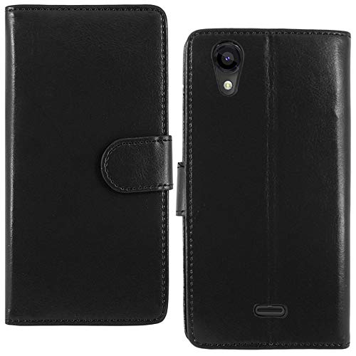 EbestStar - Cover Compatibile con Wiko Rainbow Jam 4G Custodia Portafoglio Pelle PU Protezione Libro Flip, Nero + Pellicola Vetro Temperato [Apparecchio: 143.1 x 71.4 x 8.7mm, 5.0'']