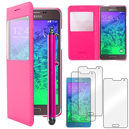 EbestStar - Cover Compatibile con Samsung Galaxy Alpha SM-G850F Custodia Portafoglio Protezione Flip Finestra View +Penna +3 Pellicole plastica, Rosa [Apparecchio: 132.4 x 65.5 x 6.7mm, 4.7'']