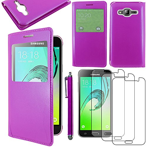 EbestStar - Cover Compatibile con Samsung J3 2016 Galaxy SM-J320F Custodia Portafoglio Protezione Libro Flip con Finestra View +Penna +3 Pellicole plastica, Viola [Apparecchio: 142.3x71x7.9mm, 5.0'']