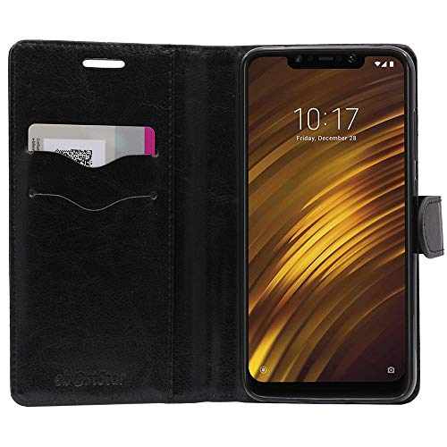 EbestStar - Cover Compatibile con Xiaomi Pocophone F1 Custodia Portafoglio Pelle PU Protezione Libro Flip, Nero + Pellicola Vetro Temperato [Apparecchio: 155.5 x 75.3 x 8.8mm, 6.18'']