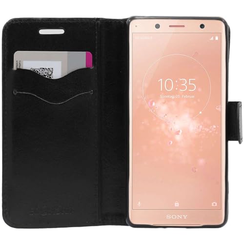 EbestStar - Cover Compatibile con Sony Xperia XZ2 Compact Custodia Portafoglio Pelle PU Protezione Libro Flip, Nero + Pellicola Vetro Temperato [Apparecchio: 135 x 65 x 12.1mm, 5.0'']