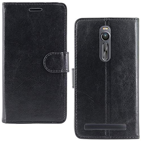 EbestStar - Cover Compatibile con ASUS ZenFone 2 ZE551ML Custodia Portafoglio Pelle PU Protezione Libro Flip, Nero + Pellicola Vetro Temperato [Apparecchio: 152.5 x 77.2 x 10.9mm, 5.5'']