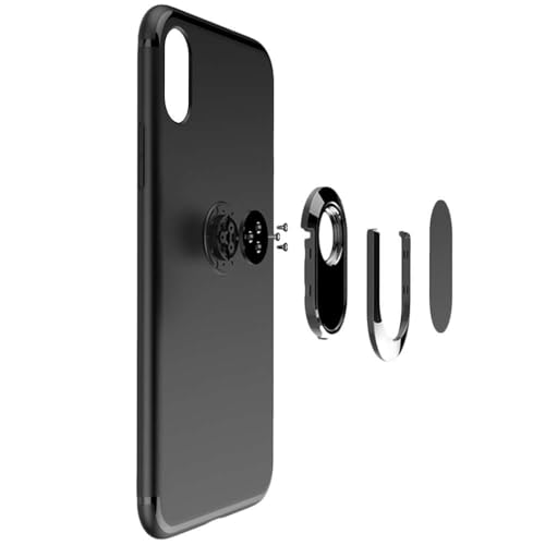 EbestStar - Cover per iPhone X, iPhone XS Apple, Custodia Protezione Silicone, Anello Supporto, Rotazione 360, Nero + Vetro Temperato