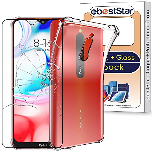EbestStar - Cover per Xiaomi Redmi 8 8A, Custodia Silicone Trasparente, Protezione TPU Antiurto, Bordi Rinforzati, Trasparente + Vetro Temperato