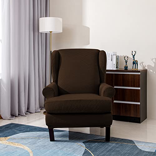 E EBETA Elasticizzato Salvadivano Copripoltrona Trapuntato Adele, Copripoltrona con Orecchie Poltrona Protettiva Jacquard Antiscivolo (Cioccolato)