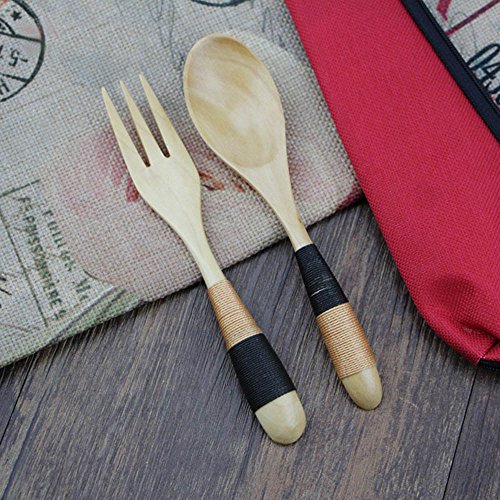 Ebilun 3 pezzi Posate in legno Set di posate da viaggio | | campeggio picnic set | Eco friendly in legno con forchetta e cucchiaio W/Pouch Perfect Replacement set posate in plastica/bag