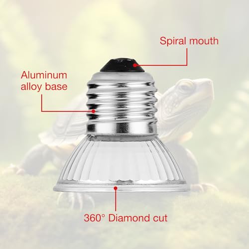 【LAMPADA CALORE A SPETTRO COMPLETO】 La lampadina della lampada termica per tartaruga utilizza una sorgente luminosa a spettro completo per simulare la luce naturale, fornendo la giusta luce UV, la temperatura e la luce sana per soddisfare le esigenze dei rettili nel loro ambiente naturale.