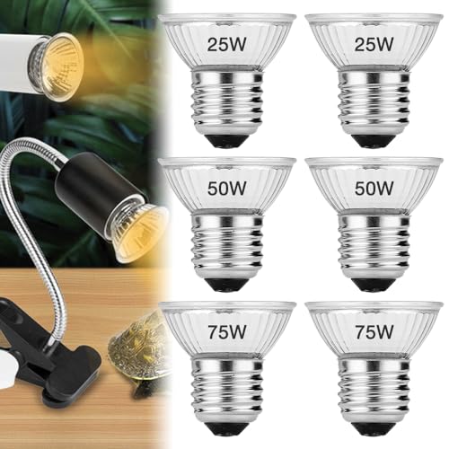 EBKCQ E27 Lampada Riscaldante 25W 50W 75W LED Lampadina UVA+UVB, Lampadina Riscaldante Luce UV a Spettro Completo per Terrarium Tartarughe d'acqua, Tartarughe di Terra y Lucertola, 6 Pezzi