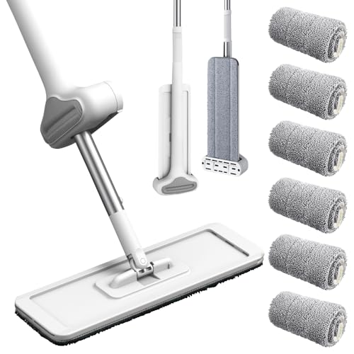 EBKCQ Mocio Piatto Lavapavimenti Grande, 12” Mocio Panno Microfibra per Pavimenti, Bagnato e Asciutto Straccio Pavimenti, Mocio Pavimenti con 6 Panni Microfibra Super Assorbenti, Bianco