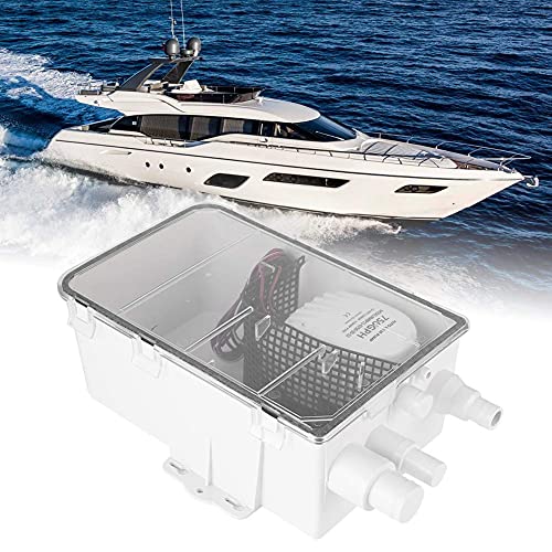 EBTOOLS 750GPH Pompa di scarico doccia, DC 12V/24V ABS Box pompa di scarico Pompa di sentina Interruttore automatico Scatola di drenaggio di sentina Multi Ingresso per barca marina Yacht G750-01(24V)