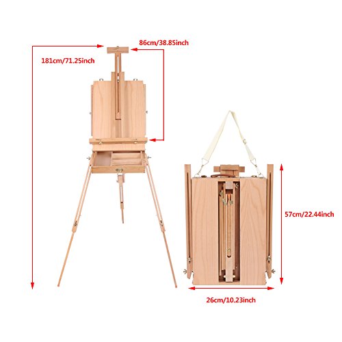 EBTOOLS Cavalletto tripode, Cavalletto tripode per Pittura in Legno, con Portatile Cassetta Valigetta Integrata, Cavalletto Pittura Barcelona per dipingere in Accademia e Studio con cavalletto