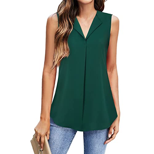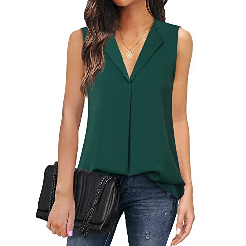 EBTOOLS Top Donna Senza Manica Donna Blusa Scollo a V Camicetta da Donna Camicetta Smanicata Tinta Unita Camicie Larghe(M-Verde)