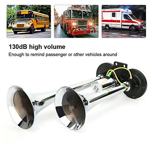 EBTOOLS Tromba Doppia Tromba 12V, Tromba pneumatica per Auto Universale Doppia Tromba 130dB 12V/24V Treno Auto Camion Camion ABS Metallo