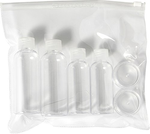 EBuyGB - Set di bottiglie da viaggio e custodia per il trasporto di cosmetici, custodia trasparente