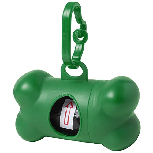 EBuyGB Dispenser per sacchetti per rifiuti a forma di osso, porta sacchetti per raccogliere cacca di cane con clip per guinzaglio, sacchetti per la spazzatura con moschettone (verde)