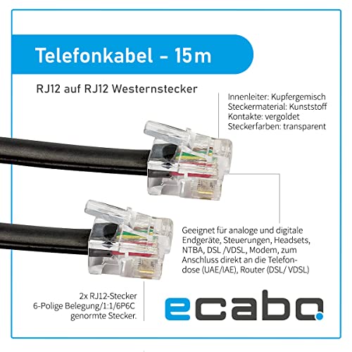 Wentronic - Cavo di collegamento modulare RJ12 su RJ12, lunghezza: 15 m, colore: nero