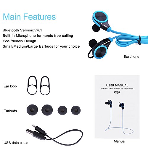 Ecandy - Auricolari Bluetooth 4.0 Wireless Stereo sport/corsa e palestra/esercizi cuffie auricolari mani libere Bluetooth Headset con microfono per iPhone 6 5S 5C 4S 4, iPad 2 3 4 Nuovo iPad, iPod, Android, Samsung Galaxy, telefoni smartphone dispositivi Bluetooth