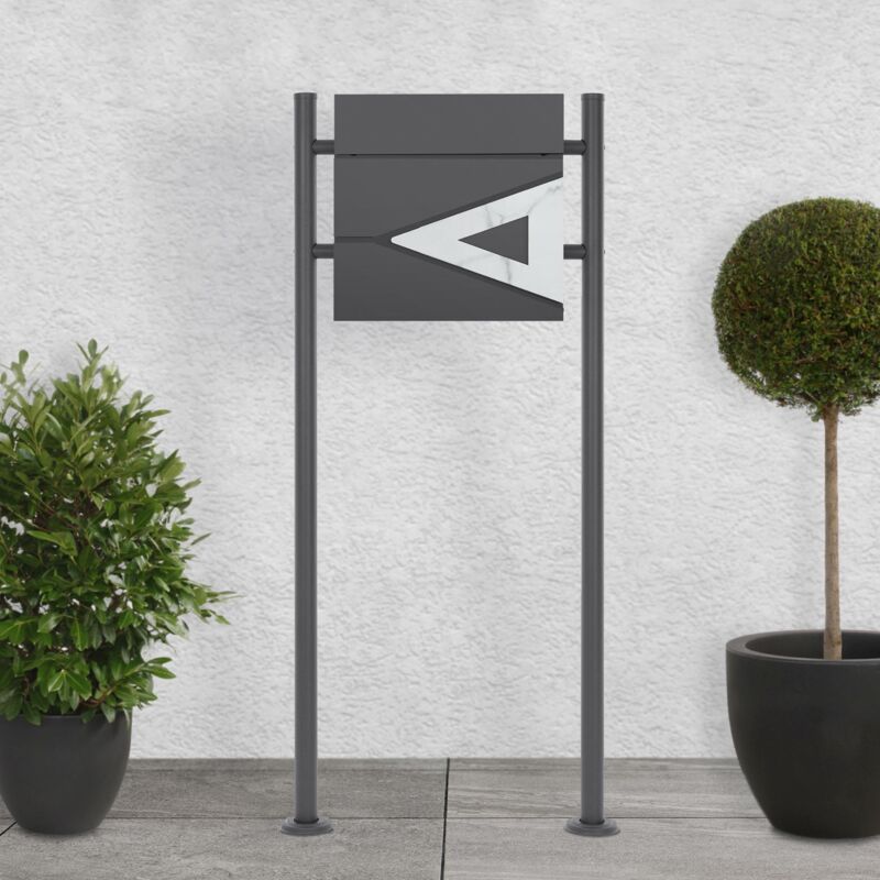 Descrizione del prodotto: Questa cassetta postale resistente alle intemperie per la parete della tua casa non attira solo l'attenzione, ma ha anche funzioni pratiche. La cassetta delle lettere è realizzata in acciaio verniciato a polvere color antracite e presenta un triangolo incastonato effetto marmo. C'è anche uno scomparto per giornali integrato. È possibile aprire la grande cassetta delle lettere con la chiave fornita. Ne ricevi subito due. Anche il supporto per le cassette postali è realizzato in materiale di alta qualità e ben fatto, quindi è molto resistente. L'acciaio inossidabile verniciato a polvere assicura che sia resistente alle intemperie. Puoi facilmente combinare il supporto con una cassetta delle lettere a tua scelta. Il supporto è bello, moderno e adatto alla tua cassetta delle lettere. Sono inclusi 6 ancoraggi a terra adatti per fissare rapidamente e facilmente il supporto della cassetta delle lettere nel terreno. Caratteristiche: Design moderno Splendidi accenti
