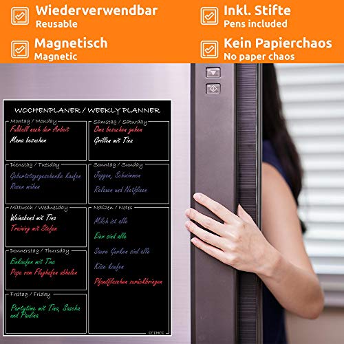 ECENCE Planner Magnetico per Menu, Lavagna Lavabile per Cucina, corridoio, Planner per Famiglia per la Spesa, Scuola, Piano dei pasti, Lavagna per Appunti con pennarelli 42cm x 30cm Nero