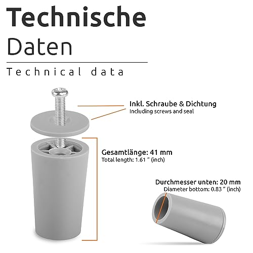 ECENCE Tappi paracolpi d'arresto per tapparelle, set da 8 di 40mm incl. viti Grigio, tappi d'arresto, protezione completa delle tapparelle avvolgibili