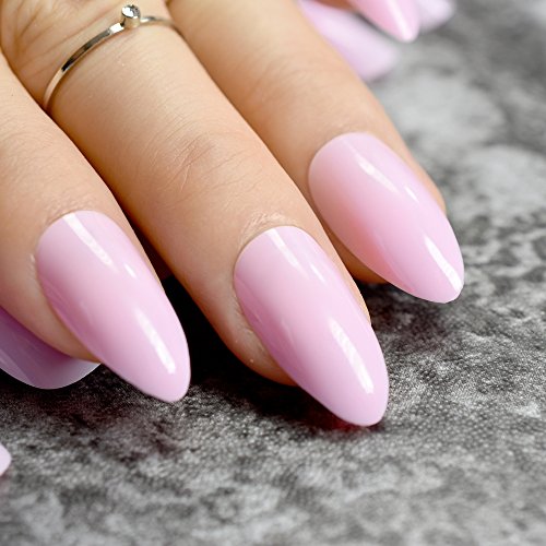Echiq 24PCS solido rosa chiaro ovale Sharp End stiletto unghie finte rosa chiaro a punta unghie finte tips manicure unghie artificiali Salon