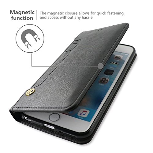 Echoss Custodia Pell per iPhone 6 / 6S & Caso del Raccoglitore per Smartphone con Copertura Magnetica e Cover Interno Semirigido Protezione Completa per il Vostro Telefono - Nero