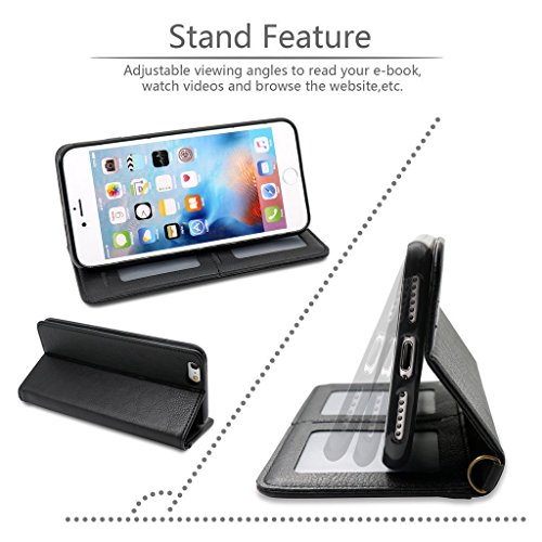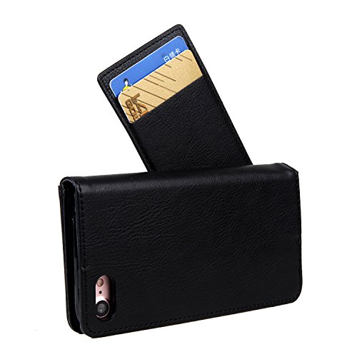 Echoss Custodia Pell per iphone 7 & Caso del Raccoglitore per Smartphone con Copertura Magnetica e Cover Interno Semirigido Protezione Completa per il Vostro Telefono - Nero