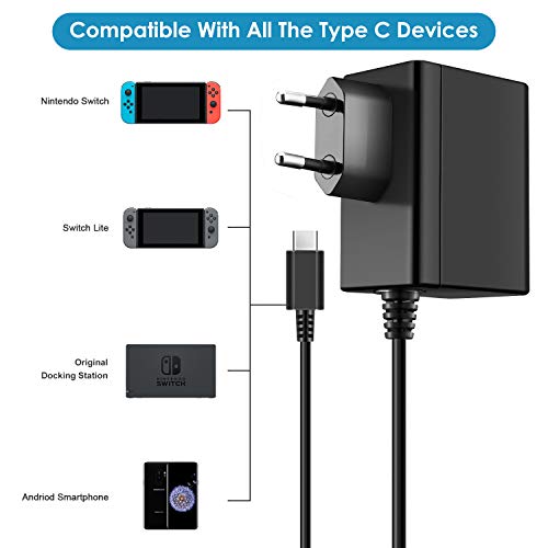 ECHTPower Caricatore per Nintendo Switch 15V 2.6A Carica Rapida con Cavo USB Tipo C, Adattatore di Alimentazione Supporta TV Dock Compatibile con Nintendo Switch & Switch Lite