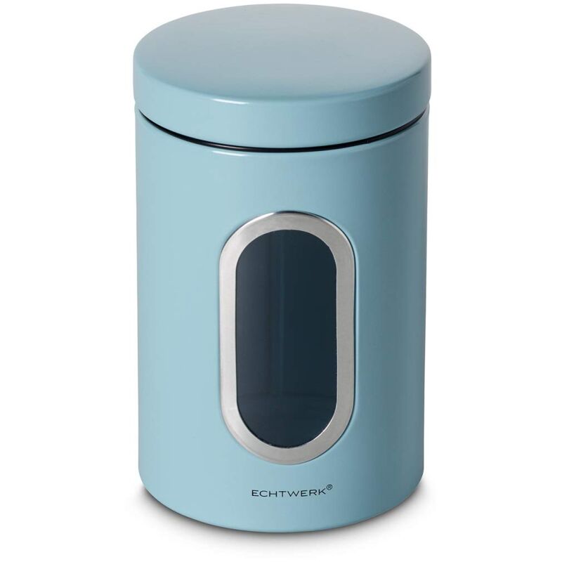 VERTWERK Barattolo Single, funzionale ed elegante per conservare vari alimenti come caffè, tè, cereali o spezie, contenitore in metallo in cinque colori eleganti (spazzolato, rosso, nero, crema e azzurro). Coperchio ermetico a scatto per una lunga durata dei prodotti. La finestra di visualizzazione grande e robusta consente di riconoscere il contenuto della scatola di conservazione. Dimensioni perfette per contenere il contenuto delle dimensioni della confezione commerciale. Dati tecnici: capacità: 1, 4 litri, 4 litri. Peso: 200 g. Dimensioni: 17,5 cm
