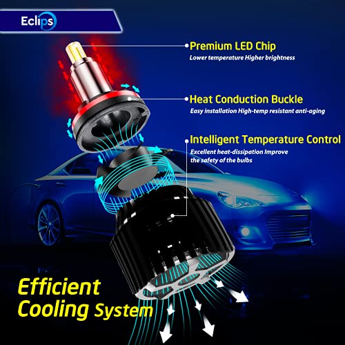 ECLIPS Lampadine H7 LED, 70W 16000LM, Luci per Auto Abbaglianti o Anabbaglianti, Kit 2 Lampade Canbus Fascio 8 Lati 360° 48 Chip CSP, Sostituzione Lampada Alogena e Fari Xenon, 12V 6000K Bianco