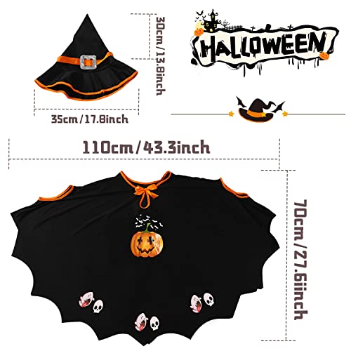 Ecloud Shop Costumi da pipistrello per bambini, mantello da zucca di Halloween per ragazze Mantello da strega con cappello per Halloween Cosplay Party-Nero
