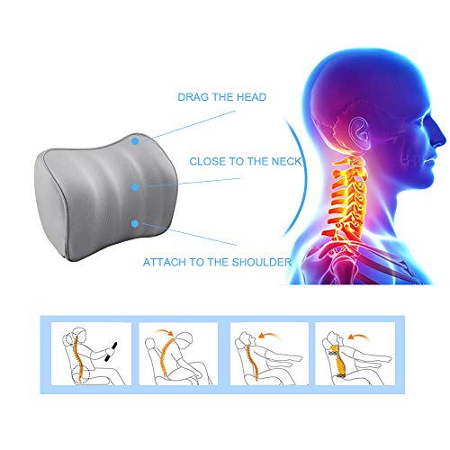 Ecloud Shop Memory Foam Supporto Lombare Cuscino Schienale e Kit Cuscino Collo Poggiatesta, Strisce Ergonomiche Concave Design Cuscino Supporto Lombare per Seggiolino Auto-Grigio