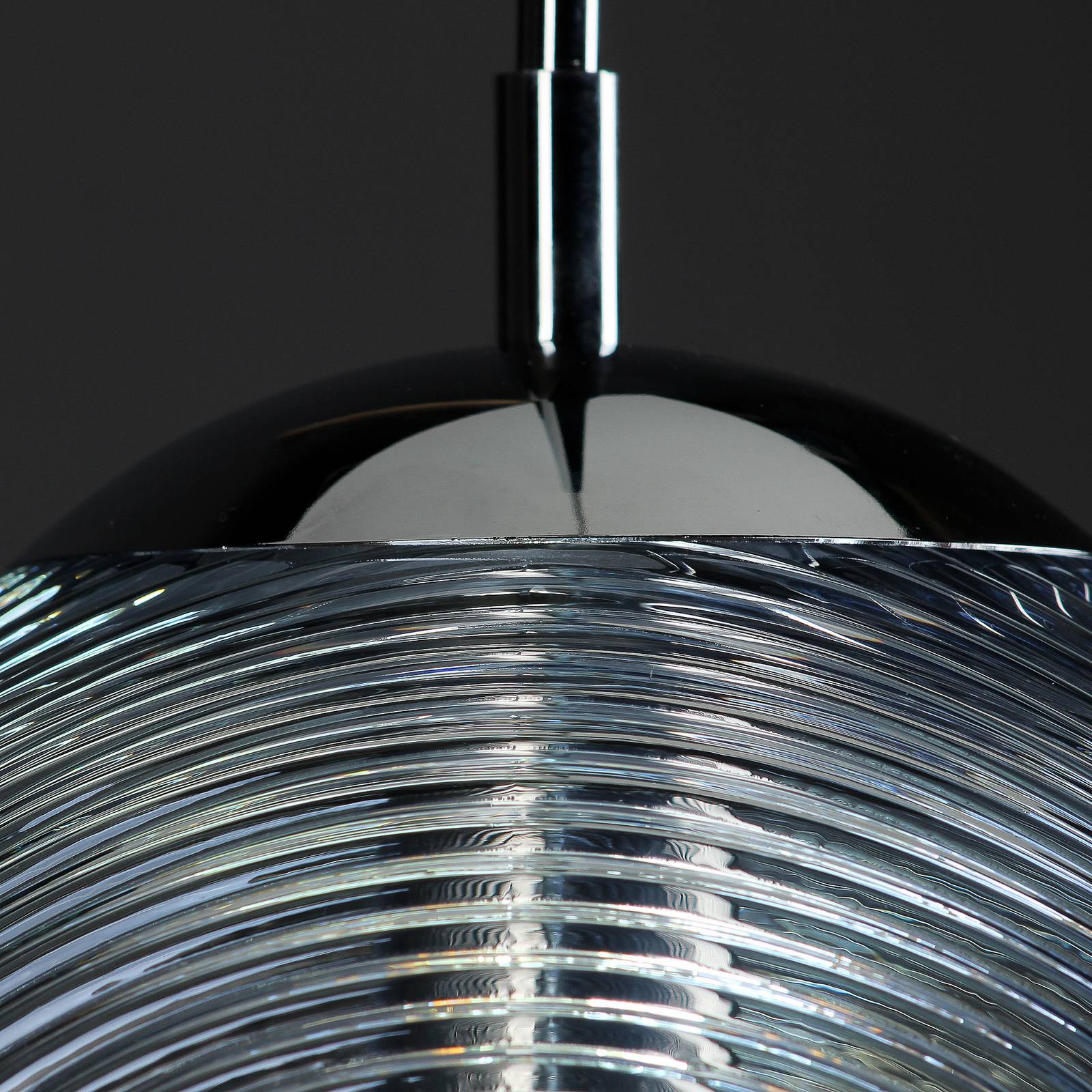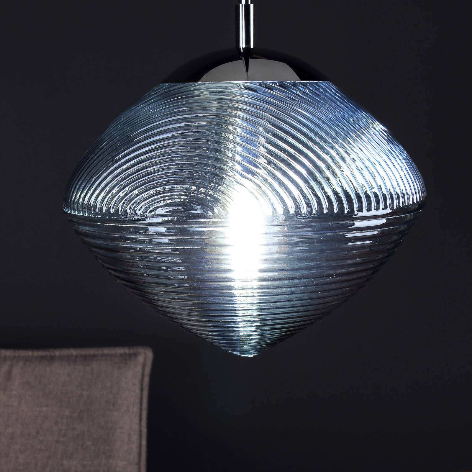 Vetro caratterizzato da linee uniformi - Lampada a sospensione Greenwich Sia la forma che il motivo concentrico rendono la lampada Greenwich un interessante oggetto di illuminazione. Il vetro affusolato della produzione soffiata a bocca presenta linee sottili e uniformi che si interrompono nel punto più largo del corpo luminoso. Una finitura cromata con cavo ritorto forma la sospensione a contrasto. Nota bene: con il vetro soffiato a bocca, possono verificarsi inclusioni d'aria. Questo è un segno di artigianato e rende ogni lampada unica.