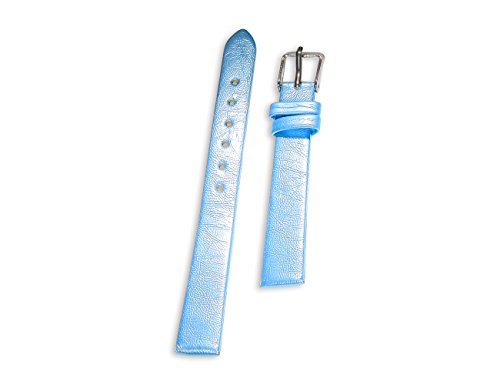 In eco-pelle cinturino in pelle Enez L: 12 mm orologio di ricambio Bracciale in argento-blu T523