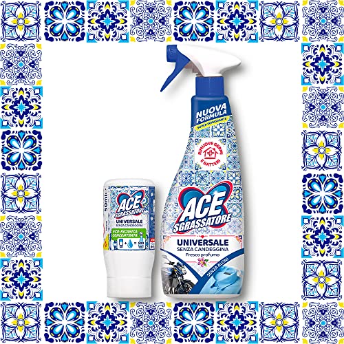 Ace eco-ricariche sgrassatore universale. Grazie alla sua formula sgrassante senza candeggina è efficace sul grasso incrostato, sgrassa e pulisce a fondo le superfici della casa.