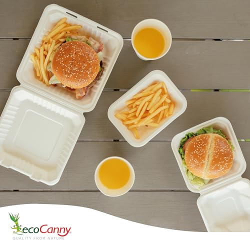 ECOCANNY, Box per Hamburger in Canna da Zucchero, Biodegradabile e Compostabile, 500cc, 150mm, Perfetto per Ristorazione Sostenibile e Ideale per il Take-Away, 50 Pezzi