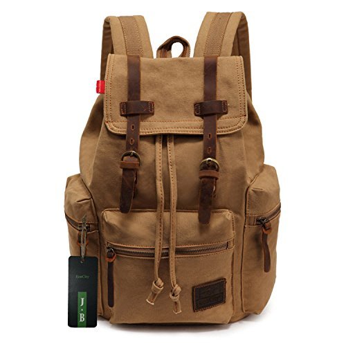 EcoCity - Zaino vintage in tela, porta computer, scuola, kaki