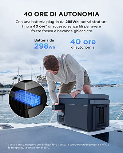 [40 ore di autonomia estesa] Questo frigorifero portatile funziona fino a 40 ore se collegato a una batteria plug-in opzionale da 298Wh.