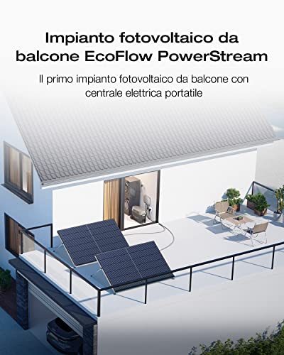 ECOFLOW Impianto fotovoltaico da balcone PowerStream, microinverter grid tie,pannelli solari rigidi 400W×2,centrale elettrica DELTA Pro,Wi-Fi,App