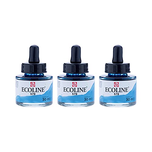 ECOLINE ROYAL TALENS ACQUARELLO ACQUERELLO LIQUIDO ACQUARELLI ACQUERELLI LIQUIDI NUOVO FLACONE 30ML (578 - BLU CIELO CYAN)