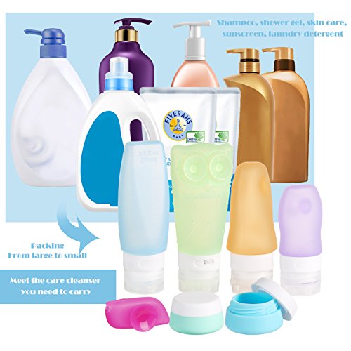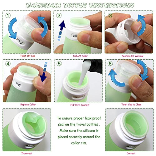 refillable- grande apertura delle nostre bottiglie di viaggio silicone rende ricariche e facilità di pulizia. altre bottiglie di plastica sono difficili da riempire e perdite tra le variazioni di pressione. si può facilmente pulire questi contenitori da toilette da bagno in acqua calda e sapone o con la lavastoviglie (cremagliera superiore soltanto). tutti Cottles è dotato di aspirazione che rende più facile da usare.