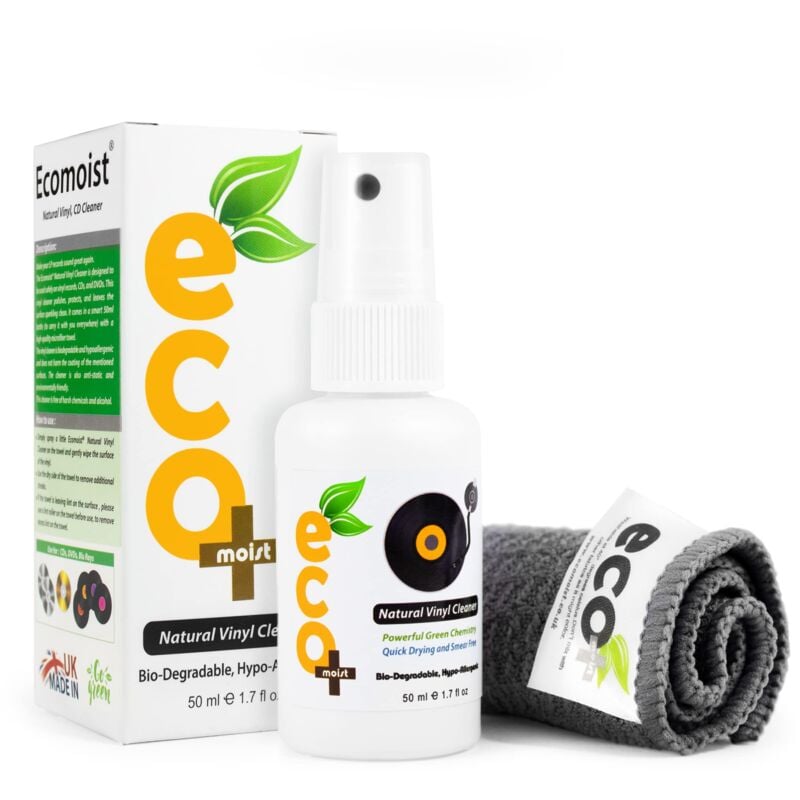 Il detergente per vinile Ecomoist è stato formulato per essere utilizzato in modo sicuro su dischi in vinile, CD, DVD. Pulisce, lucida e protegge e lascia la superficie pulita. Modo d'uso: basta spruzzare un po' di detergente Ecomoist Vinyl sull'asciugamano in microfibra e pulire delicatamente la superficie del disco in vinile, CD o DVD. Utilizzare il lato asciutto dell'asciugamano per rimuovere ulteriori striature.