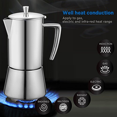 Cosa offriamo: Ecooe caffettiera moka, guarnizione extra, 18 mesi di garanzia, rimborso incondizionato e l'assistenza del nostro servizio clienti.