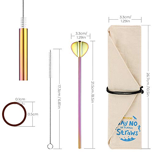 Ecooe 8 Colorate Cannucce in Acciaio Inossidabile con Cucchiaio Cannucce Riutilizzabili Tubi per Bere Ø0,5 * 21,5 cm con 2 Spazzole per la Pulizia Ideale per Cocktail,Succhi,Long Drink,Latte,Succhi