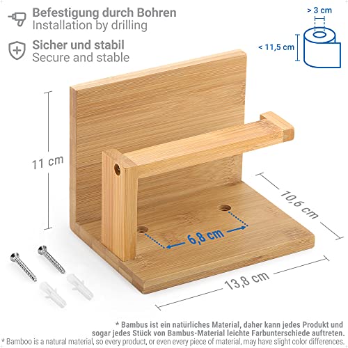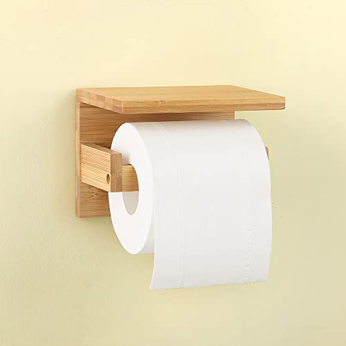 Ecooe - Porta carta igienica, supporto da parete con spazioso ripiano, porta rotolo di carta per WC, per cucina e bagno, in bambù