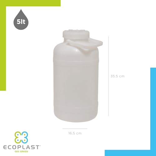Ecoplast | Fusto in Plastica a Bocca Larga con Guarnizione e Tappo, Capienza 5 Lt, Colore Neutro, ø165x355, Made in Italy