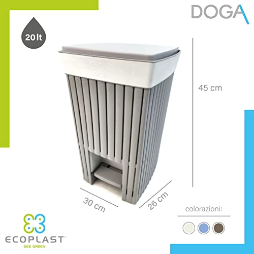 CONTENUTO - A casa riceverai la pattumiera della Linea Doga Ecoplast con la capacità di 20 Litri, realizzata con oltre il 70% di plastica riciclata. Doga è una comoda pattumiera dotata di pedale inferiore, resistente e duraturo, per sollevare facilmente il coperchio senza doversi abbassare. Robusta, maneggevole e stabile anche nelle fasi di apertura del coperchio. Ideale per ambienti come il bagno o l'ufficio.